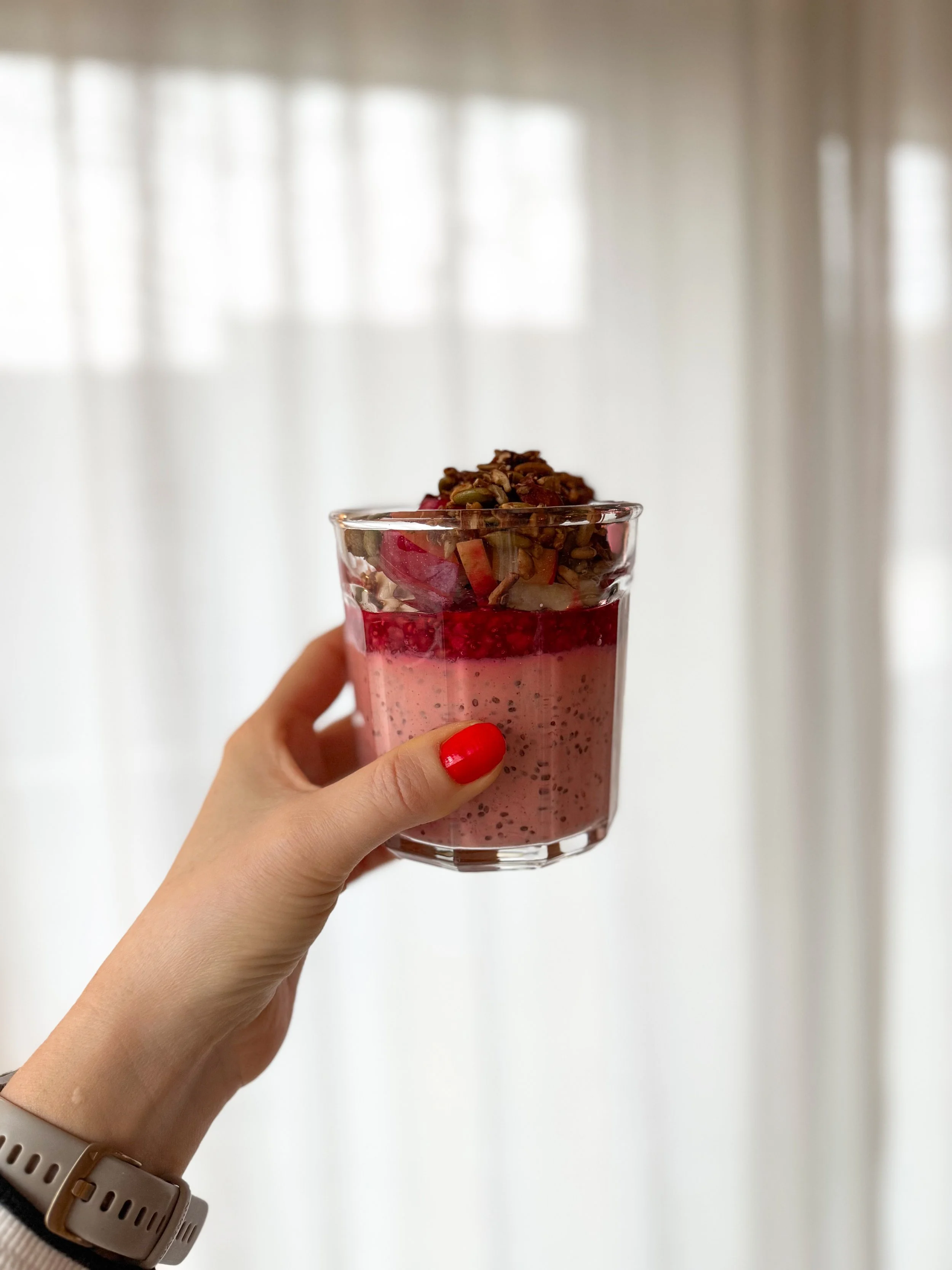 🥕 Rosa kjøleskapsgrøt for flere dager av gangen i en stor krukke.